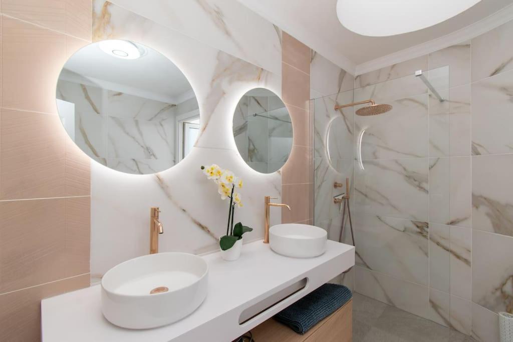 The villa has 3 bedrooms, 3 bathrooms, bed linen, towels, a flat-screen TV, a dining area, a fully equipped kitchen, and a terrace with sea views. Guests can enjoy a meal on an outdoor dining area while overlooking the mountain views. For added privacy, the accommodation features a private entrance.